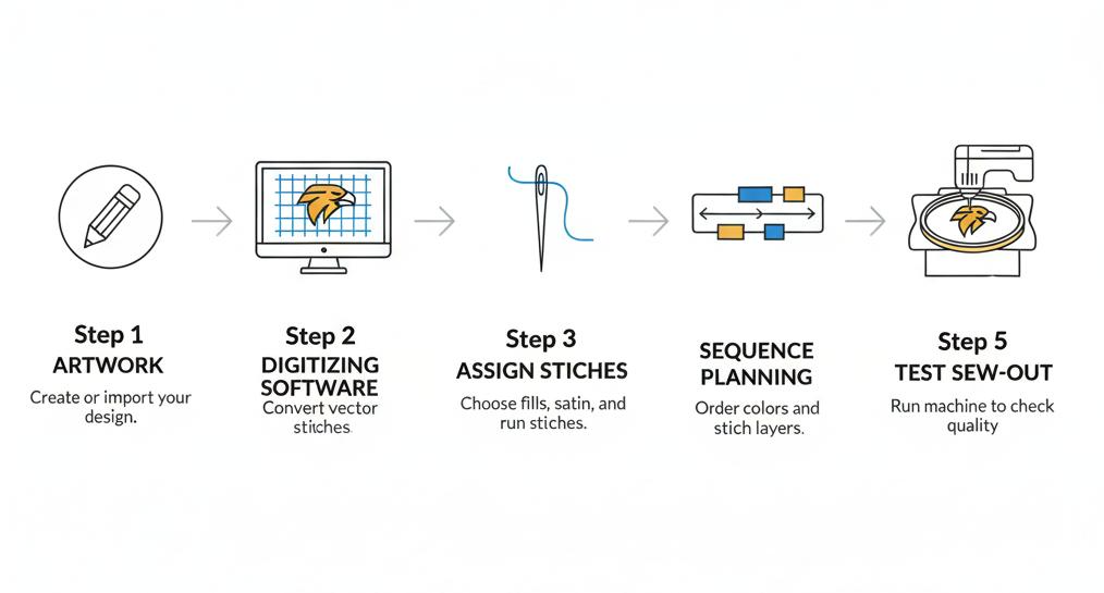 Embroidery digitizing is the process of converting an image (like a logo, text, or illustration) into a stitch file that embroidery machines can understand.